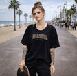 Das Shirt besteht aus hochwertigen Materialien, die weich und angenehm auf der Haut sind. Es ist locker geschnitten, um eine übergroße Passform zu bieten, die perfekt für einen lässigen Look ist. Das Shirt hat eine bequeme Länge, die bis zur Hüfte reicht und mit einer Vielzahl von Unterteilen kombiniert werden kann.